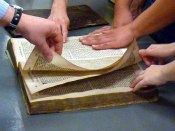 Młodzież zwiedziła czytelnię główną i magazyny Biblioteki oraz zapoznała się z systemem transportowania książek w obrębie budynku. Najbardziej emocjonującym elementem programu była jednak możliwość zobaczenia cennych, zabytkowych książek. Uczniowie mieli szansę dotykowego poznania faktury papieru, porównania ksiąg wydrukowanych w różnych okresach i rozmaicie oprawionych – w tym tych unikalnych, pochodzących z XV i XVI wieku. Bogaty wykład na temat historii piśmiennictwa i druku, opowieść o tworzeniu kopii średniowiecznych zdobień, uzupełnione opisem prezentowanych dzieł, w interesujący sposób pogłębiły wiedzę zdobytą na lekcjach.